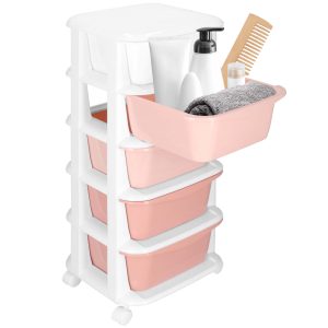 Priekšrocības: Trīs ietilpīgas atvilktnes Drošības mehānisms pret izkrišanu Ergonomiski rokturi Drošas noapaļotas malas Mobilitāte uz riteņiem Pasteļu krāsas Parametri: Zīmols: