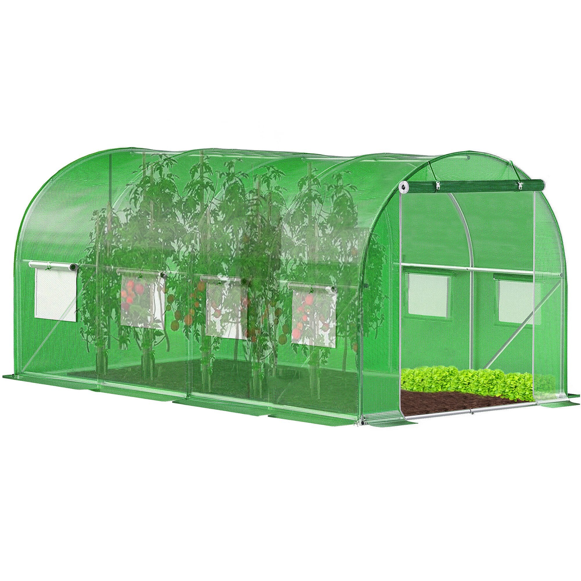 Pārklājuma materiāls: 100% polietilēna folija Folijā iespiestā sieta materiāls: 100% polipropilēns Folijas svars: 140g/m2 UV aizsardzības indekss: 4 Folijas krāsa: caurspīdīga + zaļa, smalks režģis Aizdares veids: rāvējslēdzējs 2 Velcro siksniņas augšpusē, lai nostiprinātu sarullēto foliju Logu skaits: 9 ar moskītu tīkliem Zemes apkakle, kas jāierok zemē: Jā Durvis: aizvērtas ar rāvējslēdzēju Izmēri: Kopējais garums: 400 cm Kopējais platums: 250 cm Kopējais augstums: 200 cm Minimālais iekšējais augstums: 172 cm Maksimālais iekšējais augstums: 195 cm Folijas biezums: 0,4 mm Logu izmēri ar moskītu tīkliem: 36 x 36 cm (augstums x platums) Tuneļa ieejas izmēri: 180 x 110 cm (augstums x platums) Celtniecības cauruļu auklu garums: 14 x 1 cm (garums x platums) Velcro siksnu garums (durvju rullo žalūzijām): 40 x 2 cm (L x W) Apkakle ierakšanai zemē: 25 cm. Režģis: 1 x 1 cm