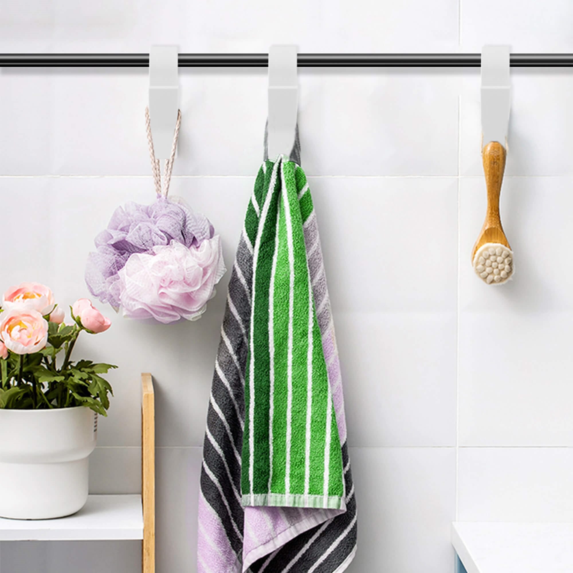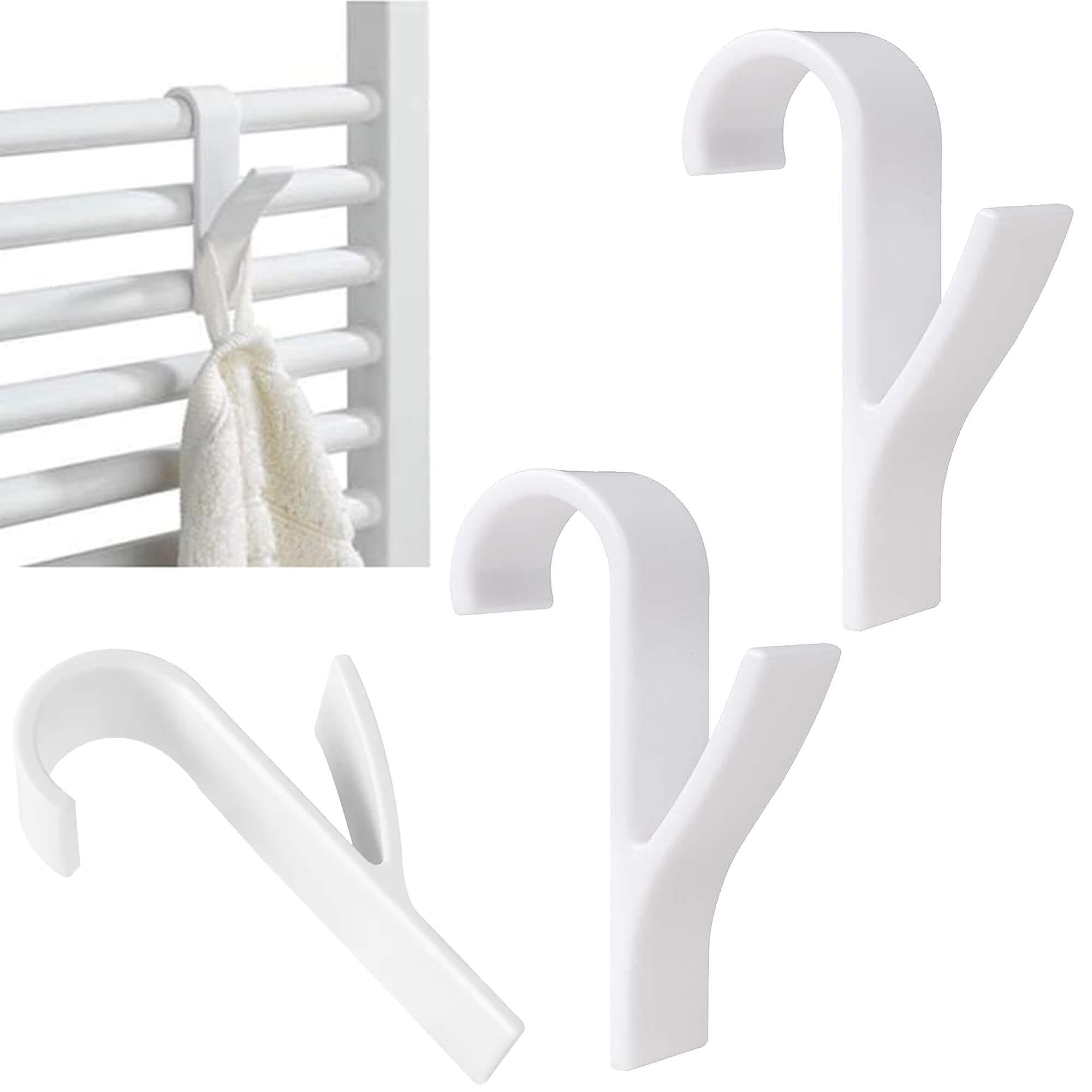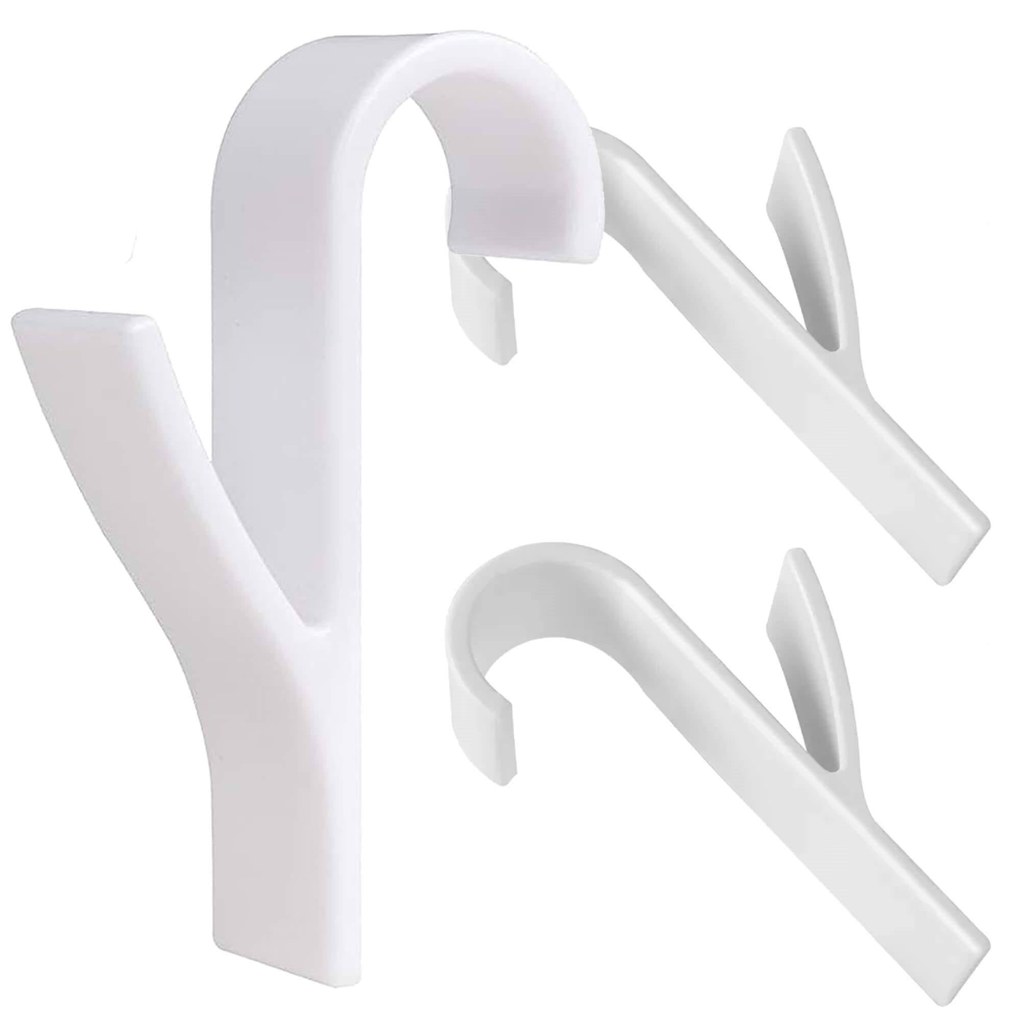 Materiāls: plastmasa balta krāsa Skaits komplektā: 2 Maksimālā slodze: 2 kg Izmēri: Augstums: 9,5 cm Platums: 2,5 cm Dziļums: 5,7 cm Noapaļotā roktura platums; apm. 3 cm Diagonālā roktura platums: 2,5 cm