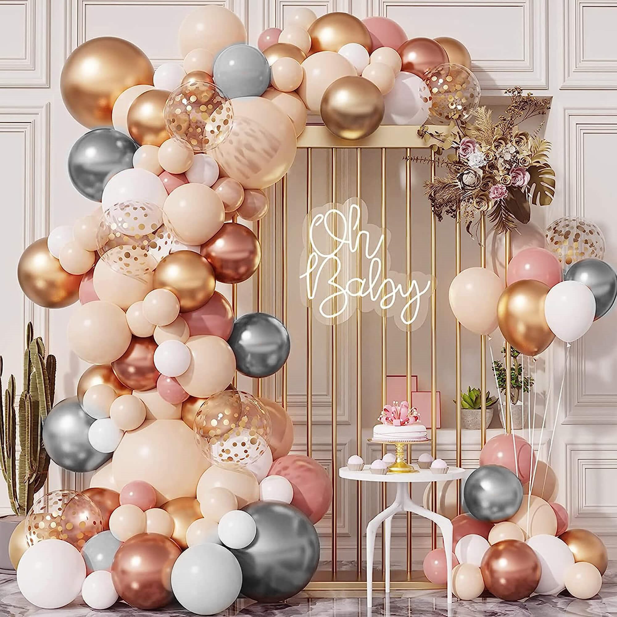 Pamatfunkcijas:Zīmols: Springos® Detaļu skaits komplektā: 50+ pielaide + /- 2 gab.Krāsa: daudzkrāsaina Piepūsts augstums: aptuveni 40 cm Materiāls: latekss Komplektā ietilpst:12x pelēks metālisks balons 10x balts balons 18x rozā metālisks balons 10x caurspīdīgs balons ar konfeti