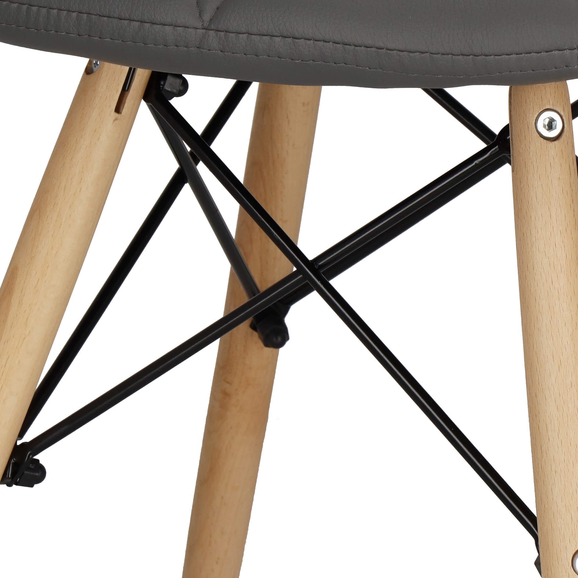 Pamatdati: Zīmols: Springos® Sēdekļa materiāls: eko-āda (poliesters) Kāju un rāmja materiāls: koks/metāls Sēdekļa krāsa: pelēka Kāju krāsa: brūna (koka) Pilnībā polsterēta atzveltne un sēdeklis Produkts pašmontāžai ar pievienotu instrukciju Iekļautas visas sastāvdaļas un montāžas instrumenti Izmēri: Kopējais augstums: apm. 72 cm Atzveltnes augstums: apm. 33 cm Atzveltnes platums platākajā vietā: 40 cm Atzveltnes platums šaurākajā vietā: 31 cm Sēdekļa platums: 46 cm Sēdekļa dziļums: 34 cm Sēdekļa biezums: 4 cm Augstums no zemes līdz sēdeklim: 50 cm Kāju attālums uz platumu: 35 cm Kāju attālums līdz dziļumam: 35 cm Kājas diametrs: 24-27 mm savienojuma vietās ar rāmi izmērs ir lielāks Kāju rāmja elementu diametrs: 6 mm Kravnesība: 125 kg
