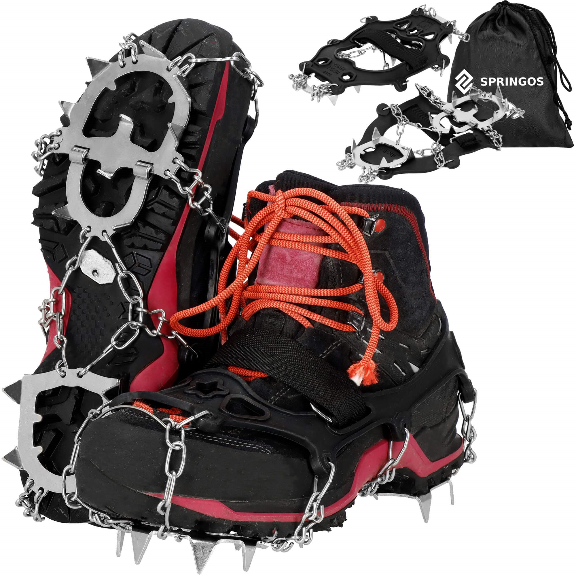 Stāvus kāpumus un nobraucienus krampjos pārvarēt ir daudz vieglāk. Pateicoties tiem, jūs iegūstat lielāku saķeri ar zemi neatkarīgi no tā, vai tā ir klāta ar dubļiem, sniegu vai ledu. Labāka saķere nozīmē mazāku paslīdēšanas un savainojumu risku. Mūsu piedāvātie rokturi ir izgatavoti no tērauda un TPE plastmasas. Komplektā ietilpst arī pārsegs tehnikas glabāšanai.