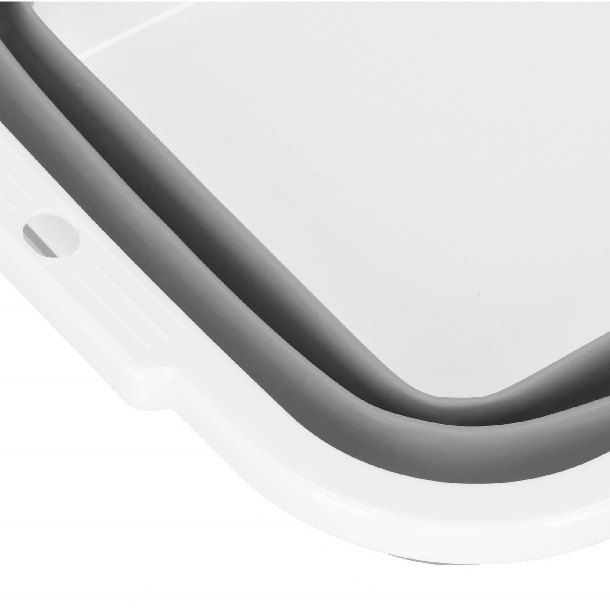 Pamatfunkcijas:Materiāls: plastmasa + silikonsKrāsa: pelēka/baltaIetilpība: 8,5 LForma: taisnstūrveidaPielietojums: universāls Izmēri: Kopējais platums: 39,5 cmKopējais garums: 29 cmAugstums pirms atlocīšanas: 4 cmAugstums pēc atlocīšanas: 15 cm li> Apakšdaļas izmēri atlocītā stāvoklī: 27 x 17 cm