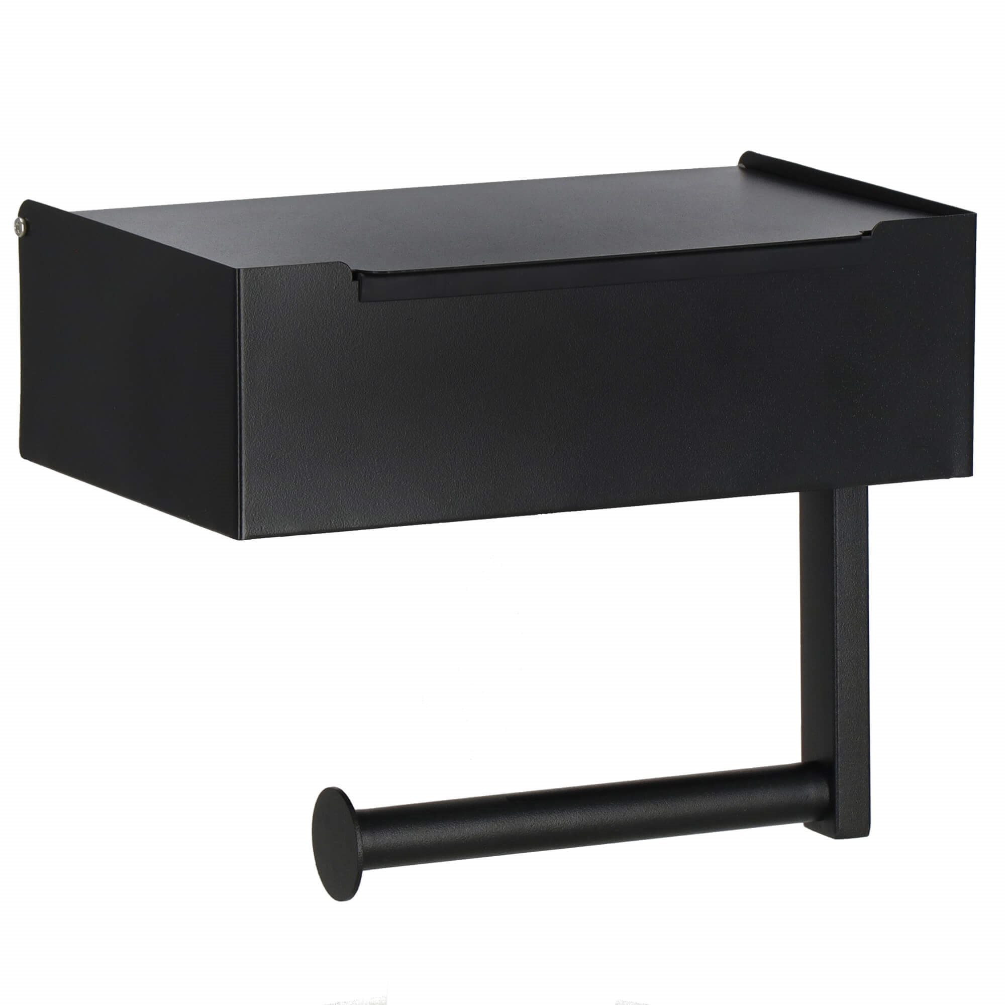 Pamatinformācija: Melna krāsa Apdare: matēta Materiāls: nerūsējošais tērauds Uzstādīšana: neinvazīva (iekļauta vienpusēja lente) vai ar 2 skrūvēm (iekļauta) Izmēri: Kastes izmēri: 20,5 x 13 x 6,5 cm (garums x platums x augstums) Dvieļu caurules garums: 14 cm Dziļums: 9 cm Montāžas daļa (blakus montāžas virsmai): 20,5 x 6,5 cm Ruļļa caurules diametrs: 1,5 cm Caurules gala diametrs: 2,8 cm Papildus informācija: Vienpusēja montāžas lente ar speciāliem izvirzījumiem, kas notur kastīti vietā 2 skrūvju montāžas caurumi (2 skrūves iekļautas) Mūsdienīgs, industriāls/bēniņu izskats Kaste ir lieliski piemērota nelielu priekšmetu glabāšanai Komplektā iekļautas montāžas instrukcijas
