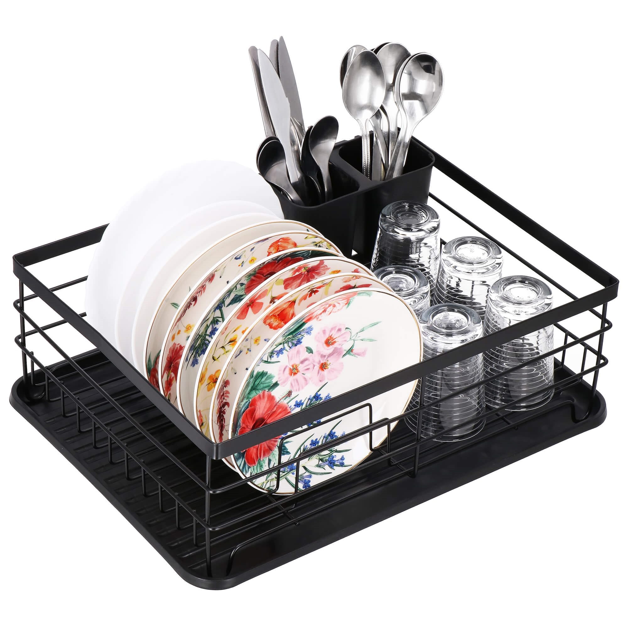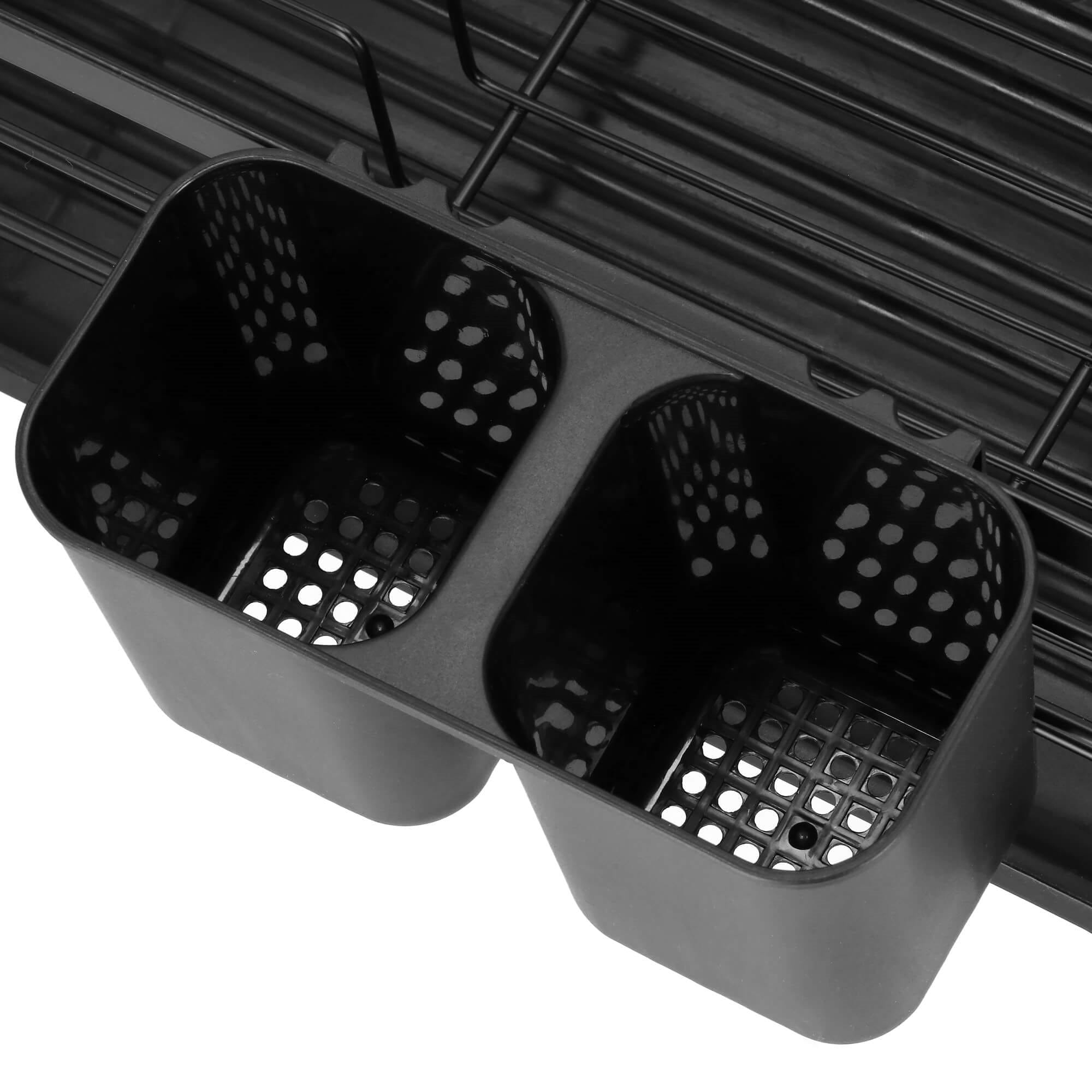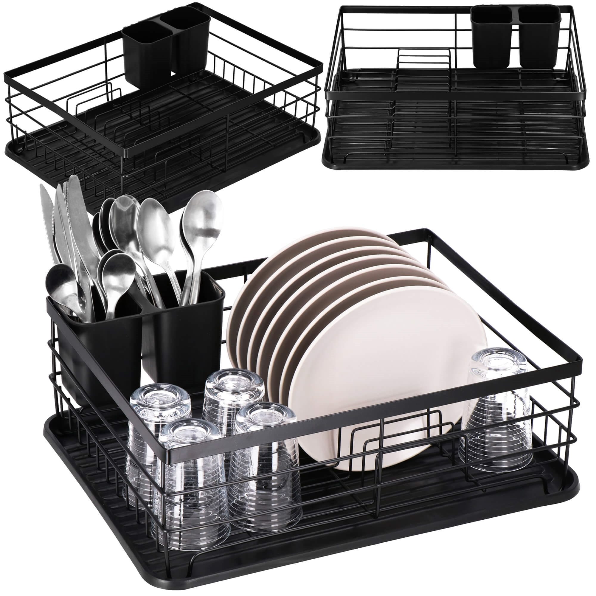 Melna krāsa Materiāls: tērauds, plastmasa Tips: trauku žāvētājs Izmēri: Kopējais garums: 42 cm Kopējais platums: 31,5 cm Kopējais augstums: 14,5 cm Žāvētāja kājas platums: 2,5 cm Attālums starp statīva virsmu un žāvētāja apakšējiem stieņiem: 3 cm Melns statīvs: 42 x 31,5 x 2 cm (ārējais garums x ārējais platums x augstums) Melns statīvs: 40 x 29,5 x 1,5 cm (iekšējais garums x iekšējais platums x augstums) Žāvētājs: 40 x 30 x 14 cm Nodaliņi žāvētājā: 8,5 x 2,5 ; 11,5 x 2,5; 20 x 3 cm Pamatnes malas biezums: 5,5 mm Žāvētāja loka biezums: 2,5 mm Žāvētāja konstrukcijas cauruļu biezums: 2 / 2,5 / 3,5 mm Konteiners ar 2 nodalījumiem: 15 x 8 x 9,5 cm (G x P x A) 2 nodalījumi: 7,5 x 7 cm (G x W) Papildus informācija: Tvertnes apakšdaļa ar nodalījumiem ir perforēta Cieta ūdens paplāte Augstas kvalitātes materiāli un darbs Elegants dizains Liela ietilpība Viegli un ērti tīrāms Ietver noņemamu plastmasas paplāti un trauku plauktu Nav nepieciešama montāža